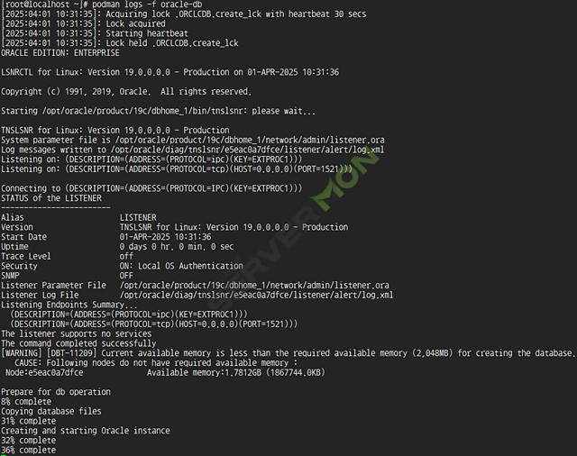 podman logs -f oracle-db