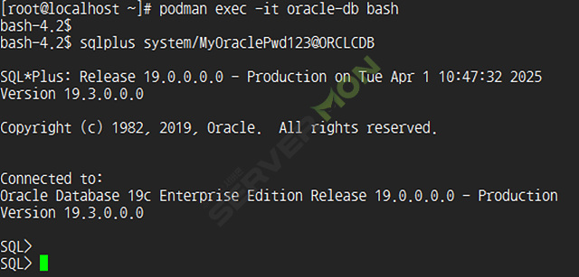 podman exec -it oracle-db bash