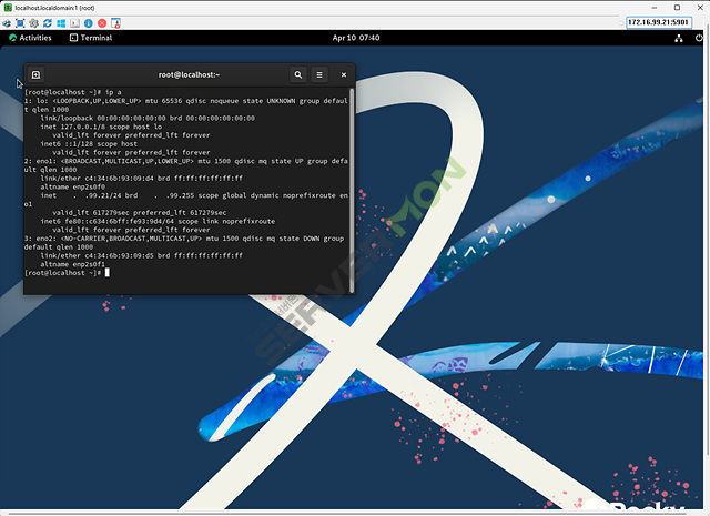 OS - Rocky Linux release 9.5 (Blue Onyx) GUI