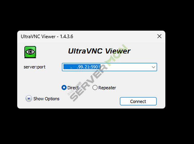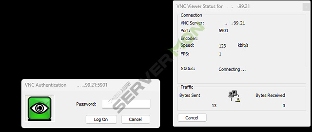 VNC Viewer 실행 아이피, 포트 입력 접속 진행합니다.