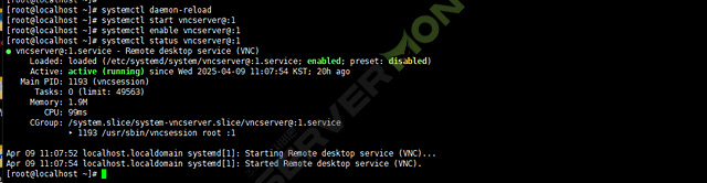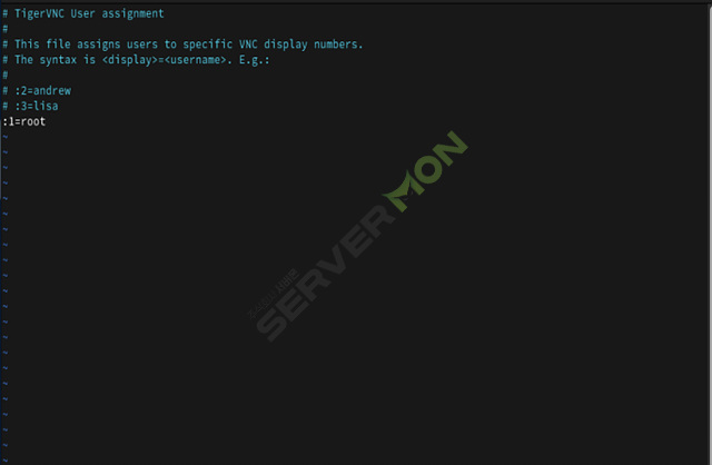 :1은 VNC 서버가 실행될 디스플레이 포트 번호입니다. 이 경우 서버는 TCP 포트 5901(5900+1)에서 실행 중입니다.