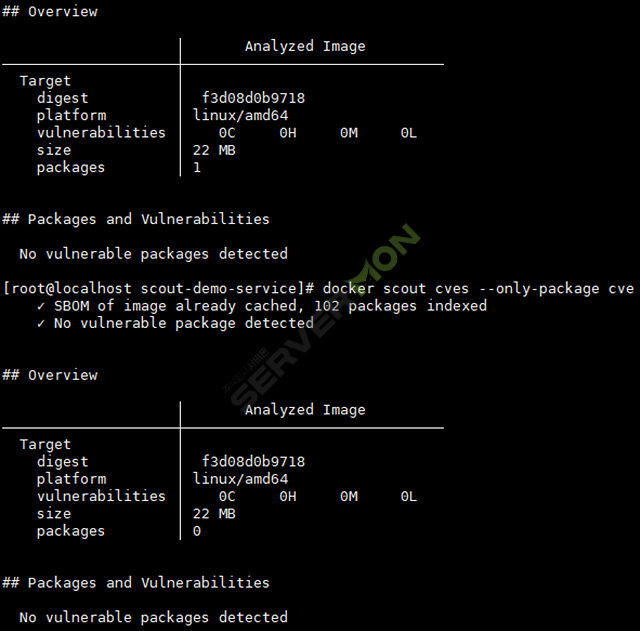 이미지의 보안 상태를 한눈에 요약하여 보여주는 명령어입니다.