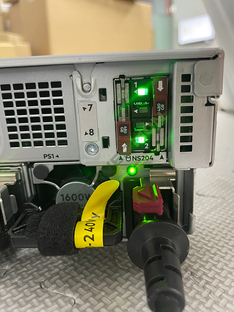 서버의 전원을 킨 후 서버 후면을 통하여 정상적으로 점등 된 것을 확인 할 수 있습니다.