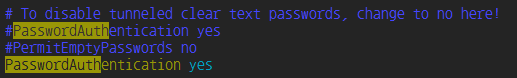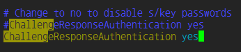 일반 사용자 패스워드를 이용한 로그인 방식을 유지하려면 이 옵션도 yes로 설정되어 있어야 합니다. 주석이 있다면 제거하고, 필요시 yes로 명시적으로 설정합니다.