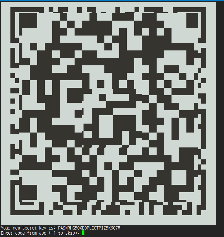 다시 google-authenticator 설정을 진행하게 되면 아래와 같이 QR 코드가 생성 됩니다.