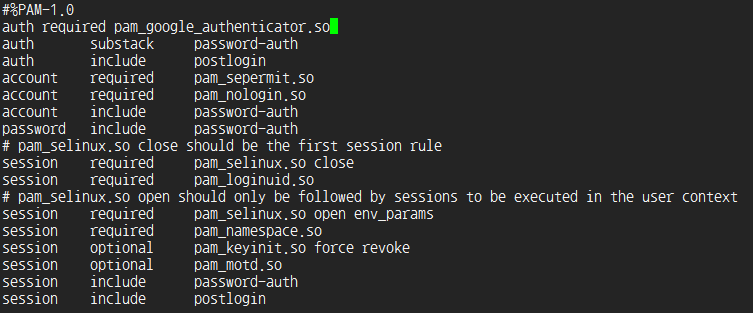 Google Authenticator를 통한 2단계 인증(Two-Factor Authentication)을 SSH 접속에 적용하려면, SSH 데몬이 PAM(Pluggable Authentication Modules)을 통해 인증 요청을 처리하도록 설정을 수정해야 합니다.