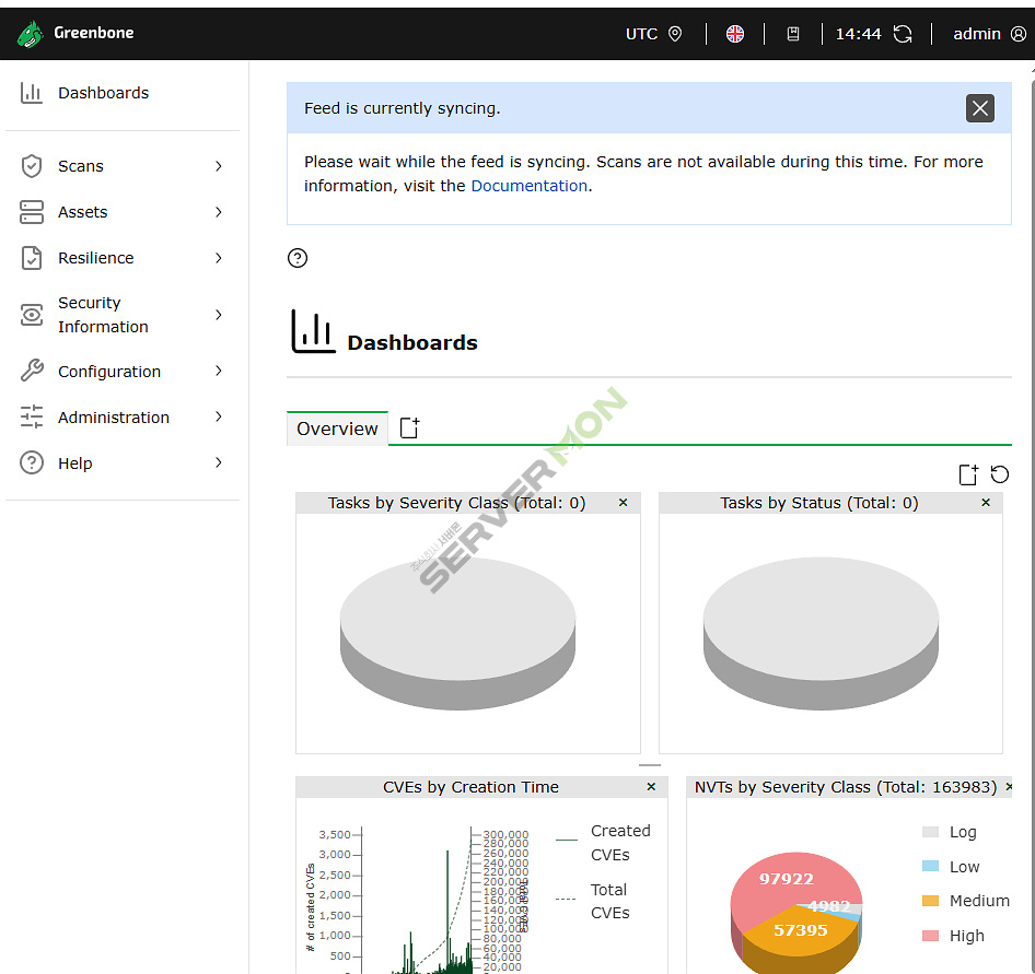 OpenVAS의 기본 설정은 Greenbone에서 운영하는 피드 서버에서 가져와 동기화 합니다.