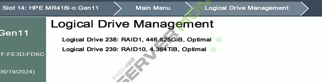 | [HPE] DL360 Gen11 4LFF 서버 MR216i-o 장착 및 Raid 구성 방법 (0) | 2025.06.04 |