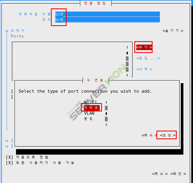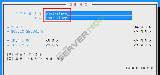 5) 1)번에서 기존 이더넷(실제 장치명) 장치명으로 설정