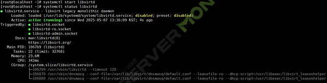 이후 가상화 관리 데몬인 libvirtd 서비스 시작을 합니다.