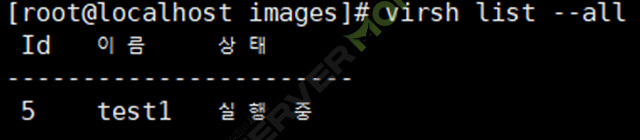 virsh list --all 명령어로 실행중인지 확인해줍니다.