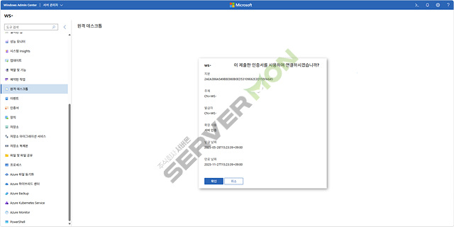 Windows Admin Center 메뉴 및 관리