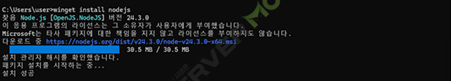 설치가 완료되었다면 node -v 명령으로 정보를 확인 합니다.