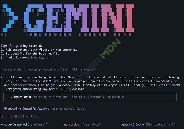 Gemini CLI는 Google AI가 제공하는 대화형 언어 모델인 Gemini 2.5 Pro 모델을