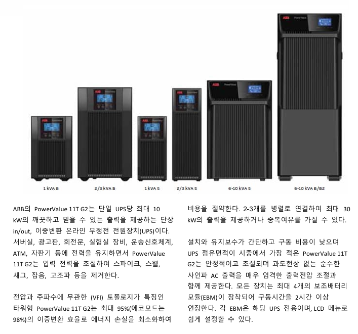 ABB UPS 대부분은 '온라인 이중변환' 구조로, 병원·서버실 등 민감한 환경에 적합합니다.