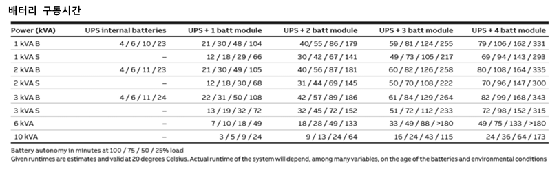 - 기본 정전 시 5~10분 내 백업 시간 제공