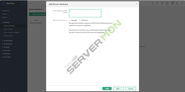 추가하는 서버에 Monitored 선택 그리고 연결 서버 iLO ip, User name, Password 기입합니다.