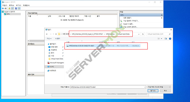 Virtual Hard Disks -> HPEOneView-8.50.00-0482370-disk1 선택합니다.