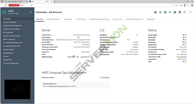 IP address 클릭하면 추가한 서버 iLO 페이지 바로 접속 가능합니다.