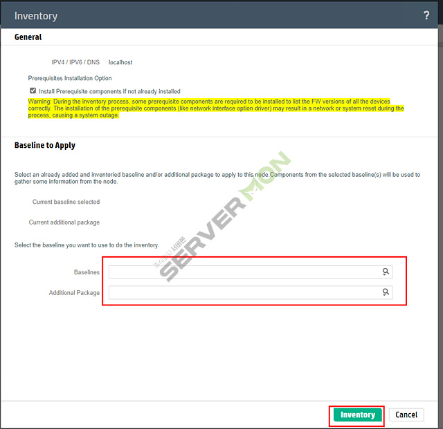 3.등록완료 후 에는 Inventory를 클릭하여 baseline 및 additional packge 를 선택해줍니다.