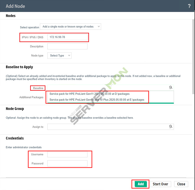 2. 해당 서버의 IP와 OS, 해당 서버의 generation 등 정보를 입력
