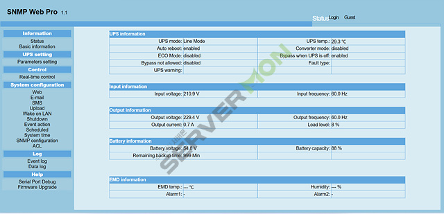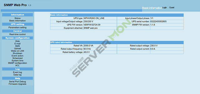 입력 전원, 출력 전원, UPS 상태, 배터리 정보 등의 환경 데이터를