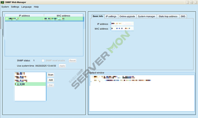 현재 네트워크 대역에 연결된 SNMP 장치가 자동으로 검색됩니다.