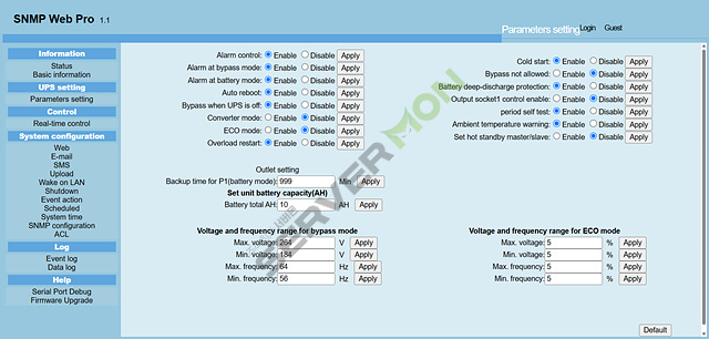 설정 방법: UPS 설정 → 매개변수 설정 선택