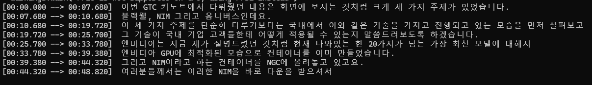 whisper C:\GTC2024.mp3 --language Korean --model large-v2