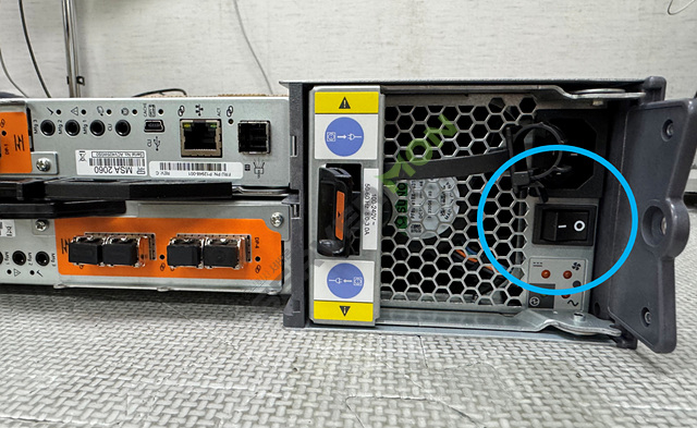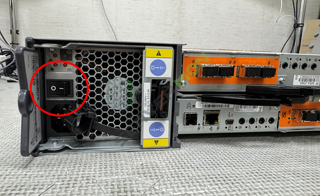 전원 연결시 양쪽 사이드에 있는 2개의 전원을 연결후 전원을 켜주셔야 스토리지 전체 전원이 올라오게 됩니다.