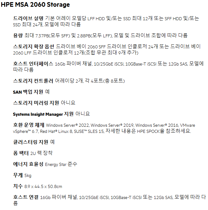 이 데이터 시트는 HPE MSA 2060 Storage에 대한 상세 정보를 제공합니다