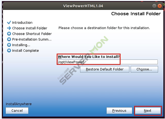 설치 파일이 해당위치에 있어서 /opt/ViewPower 위치로 지정 되었습니다.