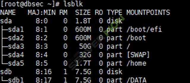 lsblk 명령어를 통해서도 장착한 USB 가 어디에 할당이 되는지 확인이 가능합니다.
