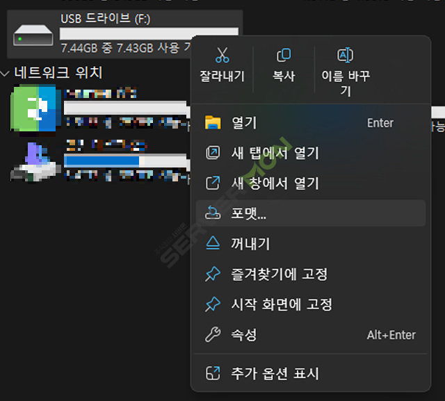 서버에 Mount 하기 전에 USB 를 일반 PC에서 포멧 하도록 합니다.