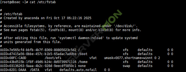 서버 재 가동시 Mount는 해제 되기 때문에