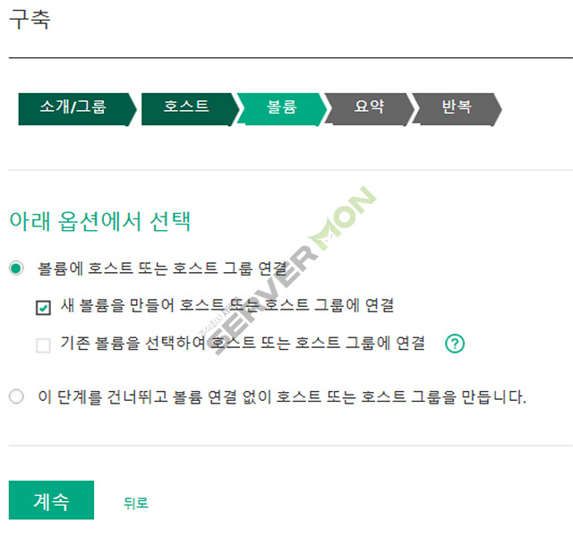 볼륨 구성 단계 입니다.