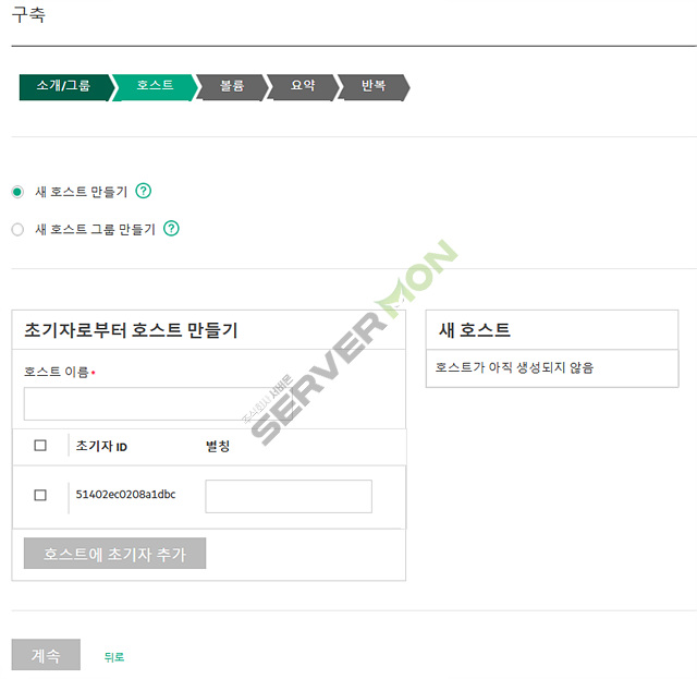 호스트이름과 별칭은 MSA 내부에서 관리용으로 구분하기 위한 이름이기에 사용목적에 맞게 입력하시고, 초기자 ID는 서버가 연결을 시도했을 때 MSA가 자동으로 감지한 정보입니다.