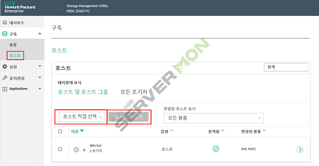 스토리지에서 만든 볼륨을 실제 서버와 연결하려면 호스트를 등록해야 합니다.