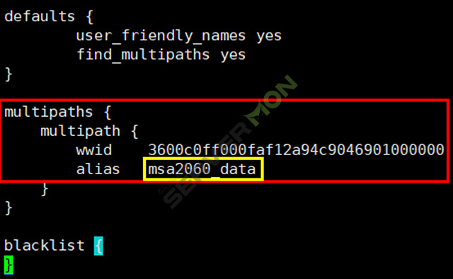 wwid 값은 multipath –ll 에서 () 괄호 안에 값을 입력합니다.