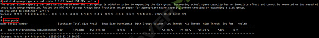 예시) add disk-group type virtual disks 1.1-1.12 level MSA-DP+ pool a