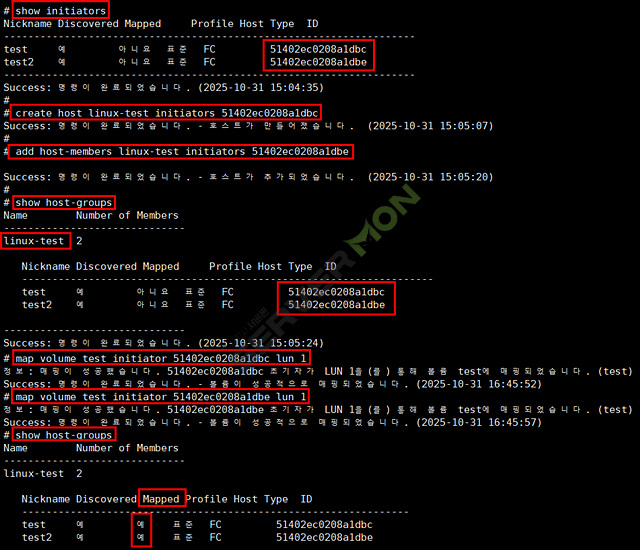 예시] add host-members linux-test initiators 51402ec0208a1dbe
