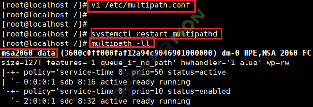 이제 mpatha 대신 /dev/mapper/msa2060_data 로 보입니다.