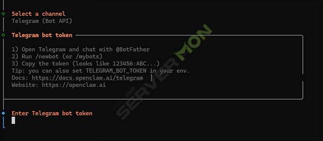 WSL 터미널에서 다음 명령어로 텔레그램 채널 설정합니다.