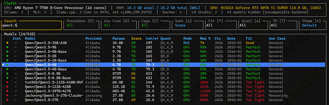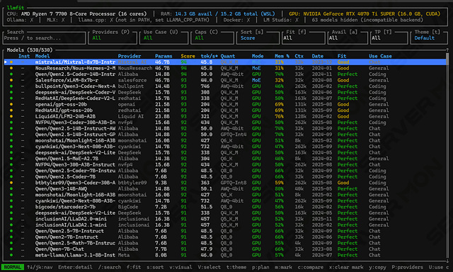 lmmfit 을 통해 수백 개의 LLM 모델과 제공자를 대상으로, 내 시스템 RAM·CPU·GPU에서 실제로 실행 가능한 모델을 한 번의 명령으로 찾아볼 수 있습니다.