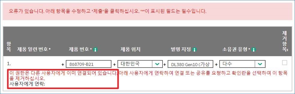 이 때 서버의 일련번호(시리얼)와 파트번호로 HP 보증 연결을 하는데 소유권 유형을 단일이 아닌 다수(Multiple)로 진행해야 다른 엔지니어의 추가적인 등록이 가능합니다.